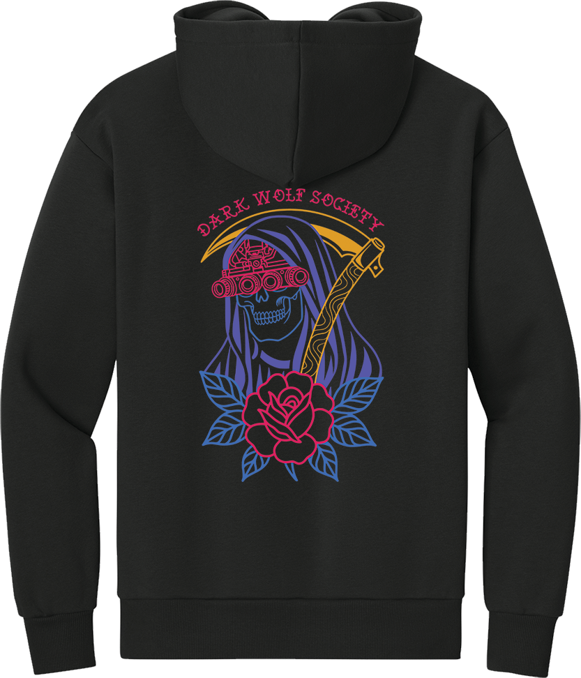 Step into the shadows with the Dark Wolf Society hoodie- A design for those who walk the line between darkness and duty.